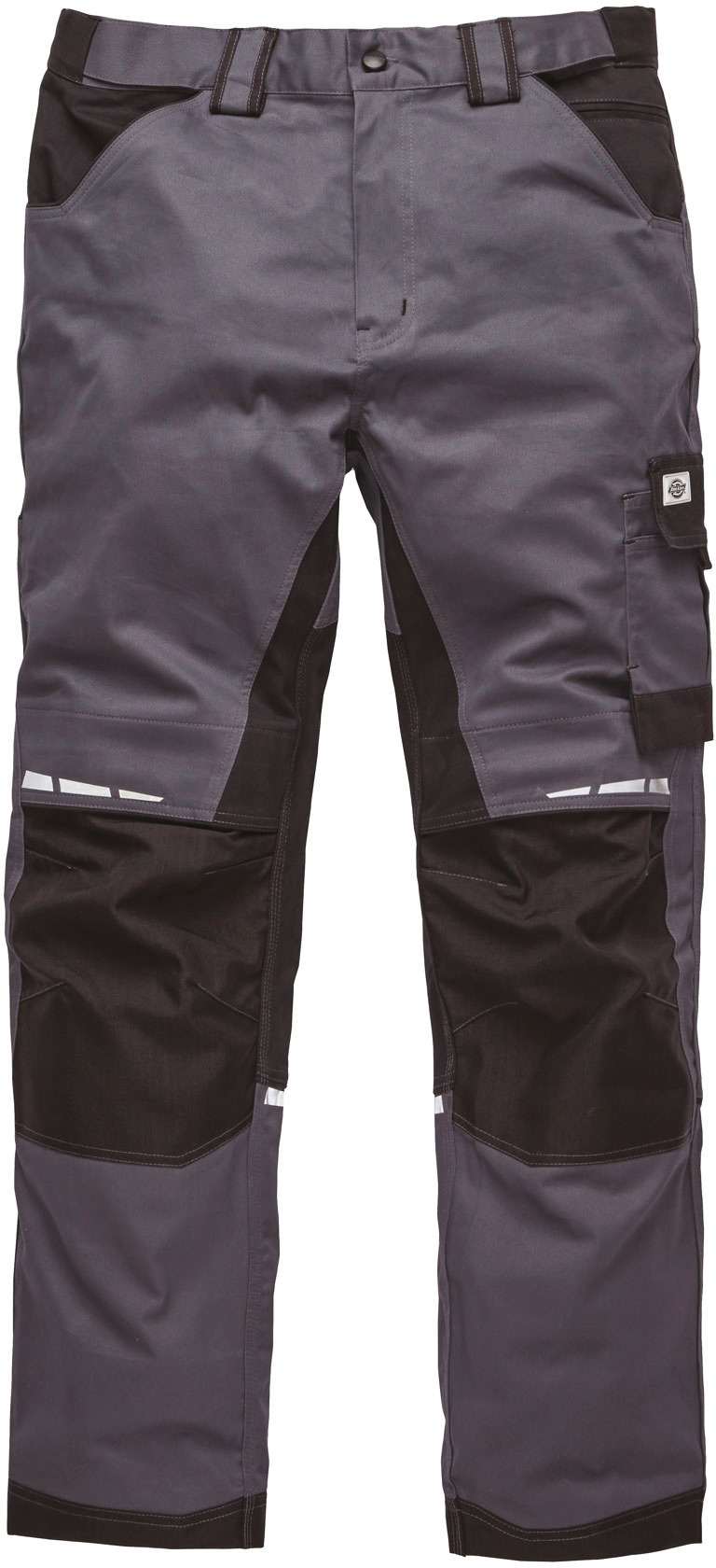 98% algodão/2% elastano. Braguilha com fecho YKK®. Costuras triplas. Vários bolsos, bolso cargo com compartimento para telemóvel e bolso para fita métrica. Presilha para martelo. Cintura elástica. Bolsos nos joelhos em Cordura®. Peça resistente e duradoura, acabamentos em Cordura®. Tecido flexível para maior liberdade de movimentos. Material confortável de elevada qualidade.