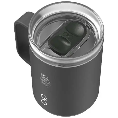 A garrafa de 350 ml "Ocean Bottle" tem um isolamento de parede dupla para manter as bebidas quentes até quatro horas e frias até dez horas. A alça ergonómica permite-lhe prendê-la a bolsas ou a outros itens para otimizar o espaço de armazenamento e a capacidade de transporte. Cada caneca de viagem é totalmente neutra em carbono e recolhe 1000 garrafas de plástico para melhorar os meios de subsistência nas comunidades costeiras. A caneca é feita de 90 % de aço inoxidável reciclado e de outros materiais reciclados. Apresentada numa caixa de presente de cartão de origem responsável e reciclado.