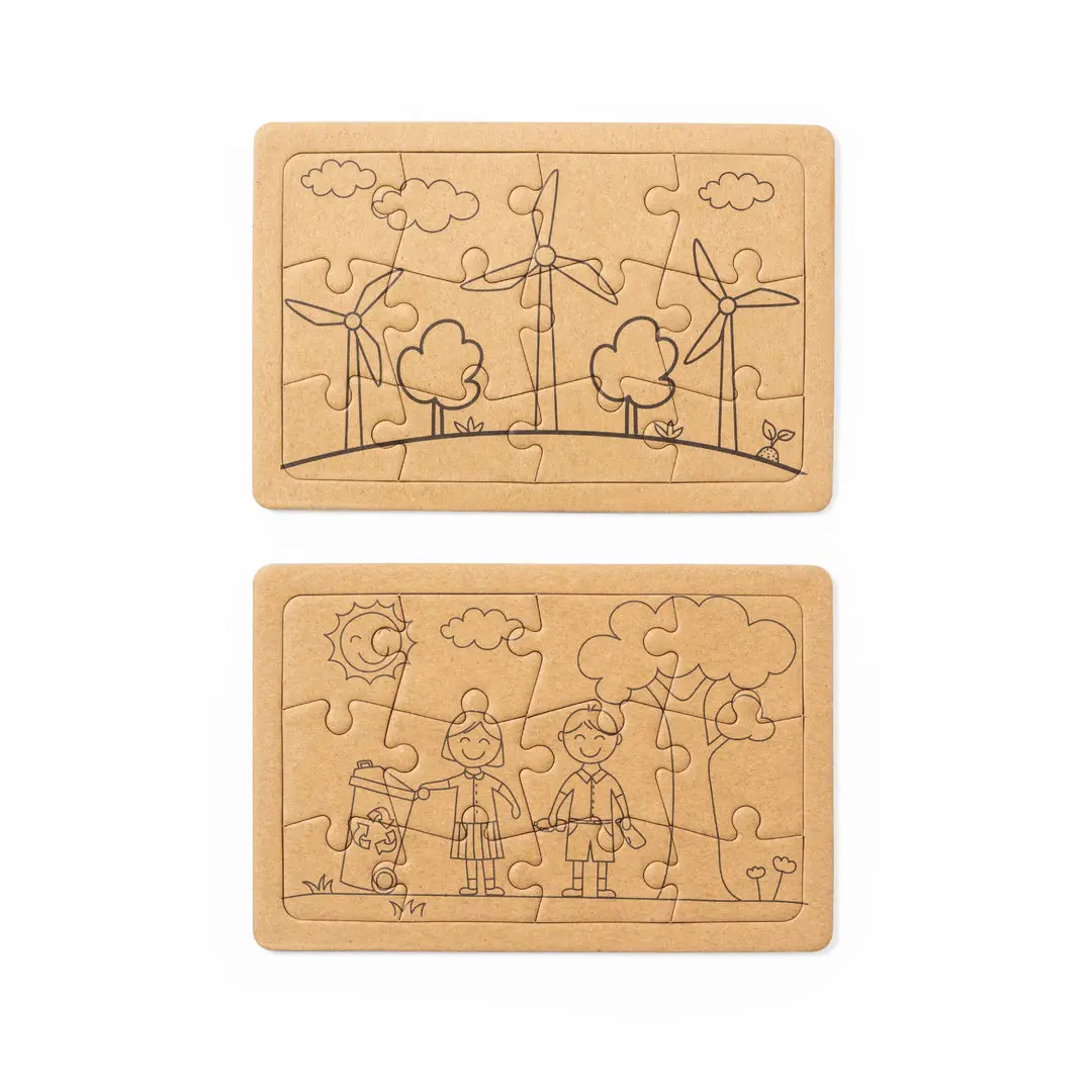 Conjunto de puzzles de linha nature fabricados em cartão reciclado. Inclui 2 puzzles de 12 peças cada um. Conjunto apresentado numa caixa individual de design kraft.