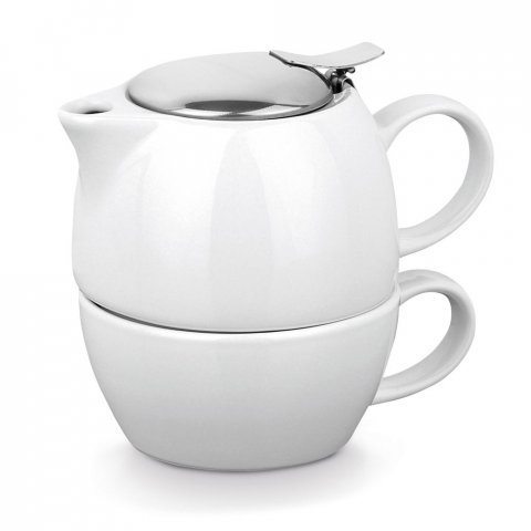 Conjunto de chá em cerâmica 2 em 1. O conjunto inclui bule com coador em aço inoxidável (430 ml) e caneca com capacidade até 260 ml.ø113 x 140 mm