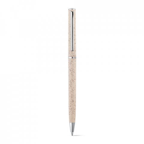 Esferográfica em fibra de palha de trigo e ABS com mecanismo twist e clipe em metal. Escrita a preto.ø8 x 126 mm