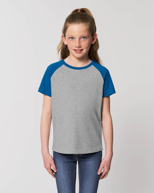 La camiseta manga corta en contraste para niño/a. Corte normal, Cuello redondo, Short Sleeve, Punto de jersey sencillo. Manga ranglán Cuello en canalé 1x1 en contraste Mangas en contraste Puntada doble en puños y bajo Bajo ligeramente redondeado