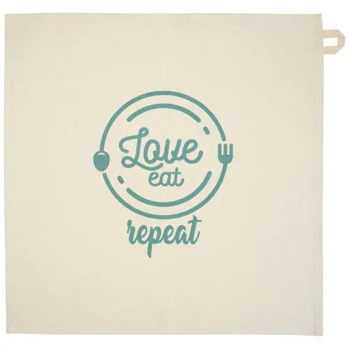 Pano de cozinha feito de 100 % de algodão reciclado de 200 g/m² com certificação GRS, com uma alça contrastante distinta. Tamanho do pano: 50 x 50 cm.