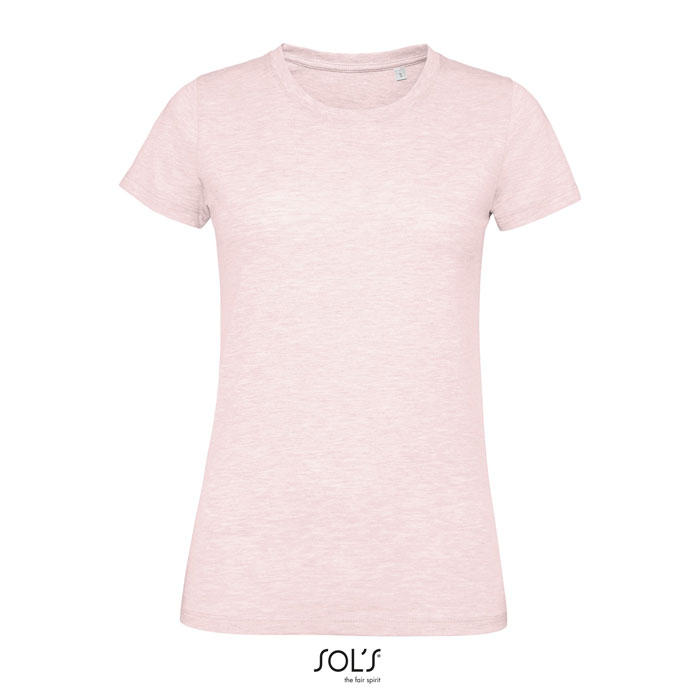 SOL'S REGENT FIT T-shirt SENHORA 150g / m². 100% algodão fiado em argola semi penteado, gola canelada em volta do pescoço, mangas curtas cortadas e costuradas, costuras na parte interna da gola.