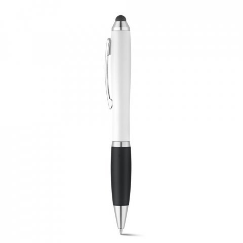 Esferográfica com clipe em metal e mecanismo twist. Adequada para o uso em dispositivos devido à sua ponteira touch e escrita cómoda com antideslizante, disponível em várias cores. Escrita a azul.ø11 x 135 mm